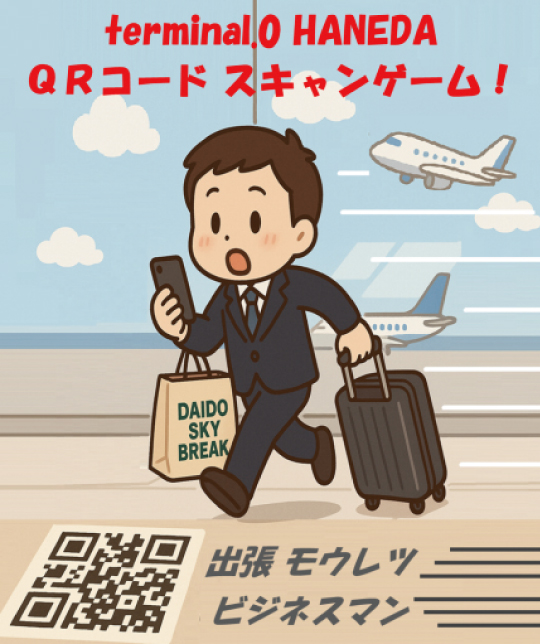 空港の使い方も学べる新感覚のQRコード・シューティングゲームをご体験いただけます。君はアジアを駆けまわるビジネスマン!フライトまで時間がない!お土産をたくさん買って無事に飛行機に乗ることができるか!?