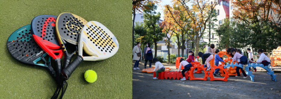 ■パデル体験:テニスとスカッシュを融合した今注目のスペイン発祥のスポーツ。ラケットでボールを打ってみよう。